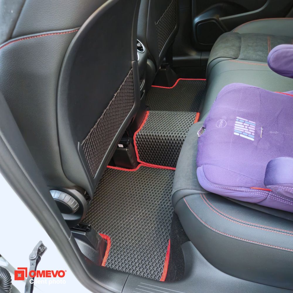 OMEVO EVA Fußmatten® werden aus leichtem, wasserabweisendem E-V-A-Schaumstoff hergestellt. Sie nehmen keine Feuchtigkeit auf, sind geruchsneutral und leicht zu reinigen. OMEVO EVA Fußmatten® vereinen die besten Eigenschaften von Gummi- und Veloursmatten, ohne deren typische Nachteile. Sie sind wasserfest, ästhetisch, geruchsneutral und werden genau nach dem Modell des Autos hergestellt, was jeden Tag Komfort und Sauberkeit gewährleistet.