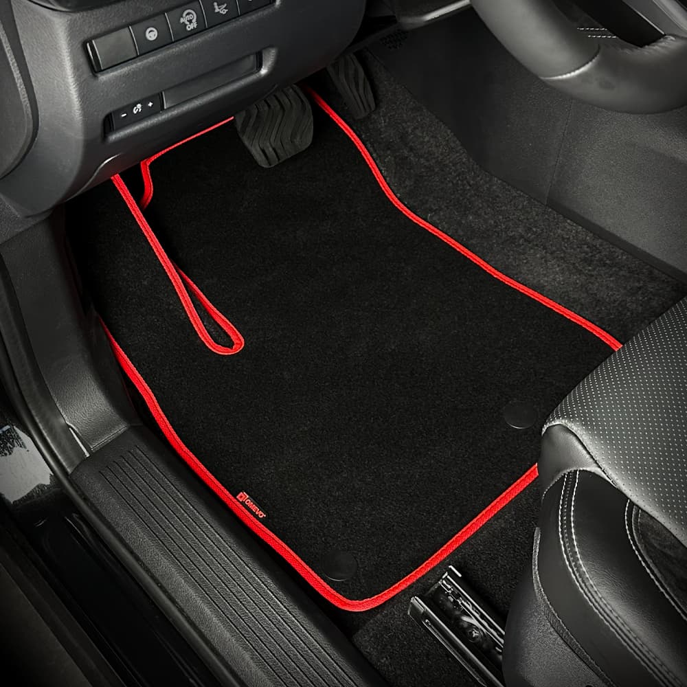 OMEVO EVA Fußmatten sind das Flaggschiffprodukt von OMEVO – wasserfest, ganzjährig nutzbar und sehr leicht zu reinigen. OMEVO Velours-Fußmatten sind für Fahrer gedacht, die die klassische Velours-Optik bevorzugen. Beide Produkte basieren auf denselben Schablonen, daher ist die Passform identisch.